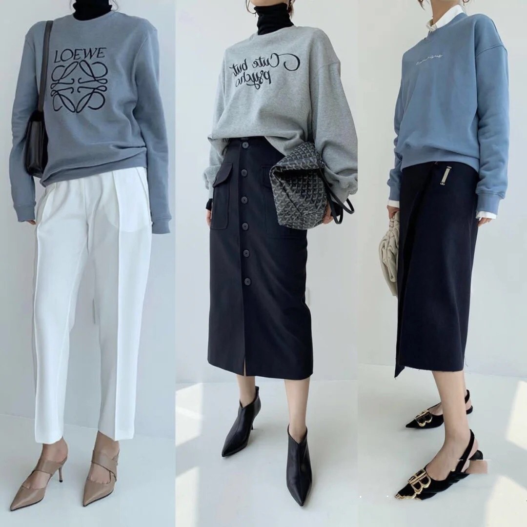 也可以用卫衣打造“半正式”的极简风。随着运动风的兴起,越来越多人注重到穿着的舒适性,在假日里卫衣、休闲裤成了主要穿搭方式。而对于一些要求不太严格的公司,还可以利用卫衣与正式感的西裤或者一步裙搭配,不过分慵懒又保留着一丝专业感,打破职场严肃沉闷的氛围。